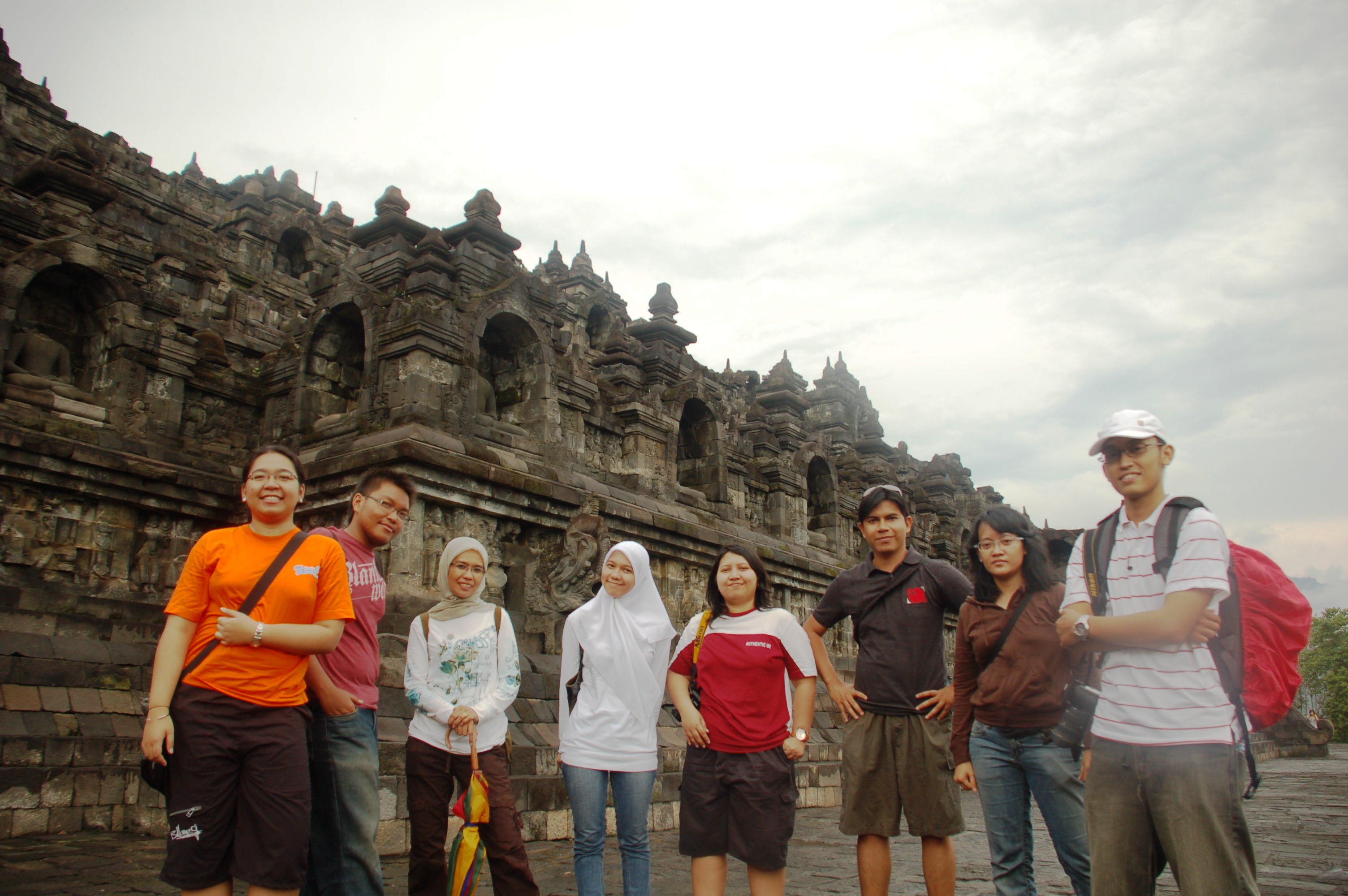 Minggu lalu napak tilas ke Yogyakarta. Sama gank 7bi minus Jolie , Nta dan Mb Nna yang lagi ndut (perutnya). Tapi ada tambahan si Uncit Oie plus mas Tukiman sang driver. Aku nyusul naek Mandala with Posy and Oie tanggal 26 Desember-nya. Sementara rombongan udah lebih duluan satu hari sebelumnya. Satu minggu sebelumnya udah cari hotel by phone. Tapi nihil. Jogya rame banget, coz tahun baru kali ini dobel alias deketan antara peringatan 1 Muharram (1 Suro versi Jawa) dengan 1 Masehi. Tumpek Blek. Akhirnya dapet juga sederhana tapi lumayan dan si Oie nginep di rumah satu kerabatnya. Oya, buat rame-ramein kita ngajak beberapa sodara di Yogya untuk ikutan jalan-jalan. Sempet ke beberapa pantai di daerah selatan yang katanya ada Nyi Roro Kidulnya (soal pantai, Aceh is still the best, bo!!). Lalu mampir ke Borobudur dan muter muter gak jelas di kota Yogya. Tidak lupa, dalam segala hal, gank gue yang satu ini gak pernah lepas dari yang namanya ning a nong alias sing a song alias karaoke begitu juga di Yogya. Agak kagok juga pas bawa Oie coz takut dia gak bisa gabung sama perempuan-perempuan ajaib itu. Tapi itu gak terjadi, jadinya asyik-asyik aja. Secara anak ini tetep aja narsis kemana-mana, karena hasil foto-foto tetep aja dia yang paling banyak.